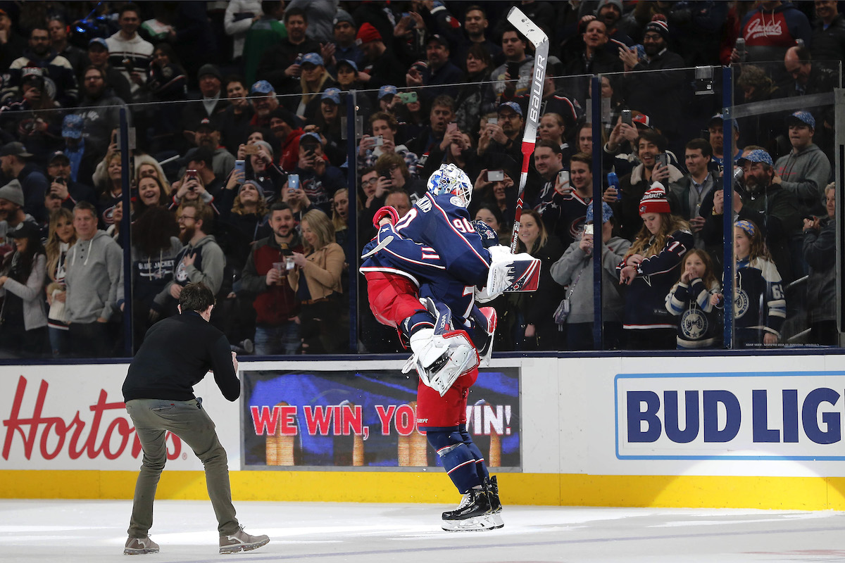 For the second time he performed a post-game hug with. However it was Merzlikins that would prevail in the shootout stopping both skaters that he faced as Patrik Laine and Oliver Bjorkstrand scored their. Jan 16 2020 Merzlikins Joslyns favorite player and Foligno had a long-running tradition of big leaping post-game hugs before the trade.