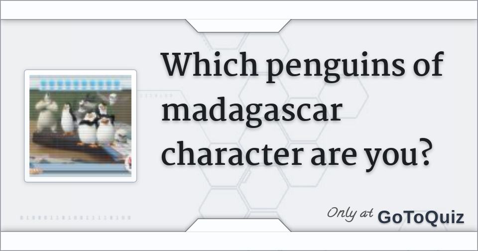 Question 6 out of 7. Jul 27 2010 Which Penguins of Madagascar Character are you. A better kind of quiz site.