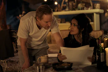 He co-stars with Salma Hayek who portrays a strange woman.